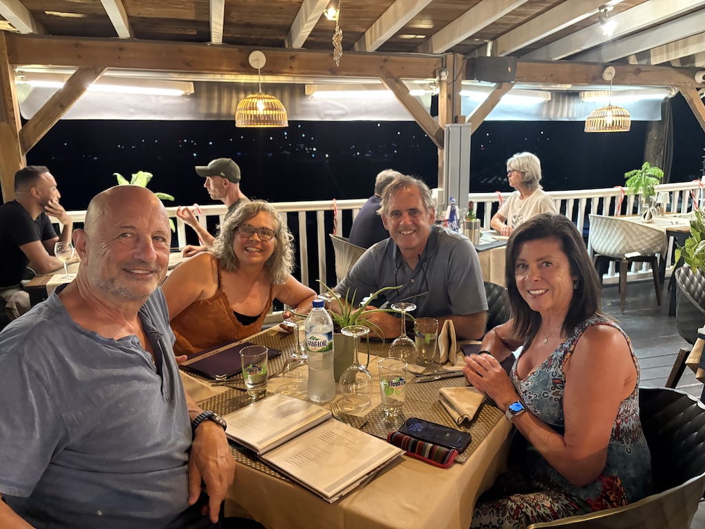 Long time readers of this blog might recall our friend Theo, with whom we sailed the waters of Greece during the first summer of Covid. We had both made it into Greece before extra Covid restrictions were put in place, which gave us plenty of uncrowded destinations to choose from with the downside of no one to share it with, until we met each other. Fast forward to last year, Theo and his partner Pam crossed the Atlantic just after us on their boat Paloma and to our surprise they were walking by Sea Rose at the dock in Le Marin when they did a double-take. We were working with a local company to start building a solar arch for Sea Rose, and likewise, they were in Le Marin for repairs to their Amel 50. Reunions with sailing friends from distant ports can be both an emotional and a fleeting experience – so many stories to swap, all under the umbrella of doubt when or if you will see each other again. It is kind of like meeting a friend from high school while rushing to your next airline departure.